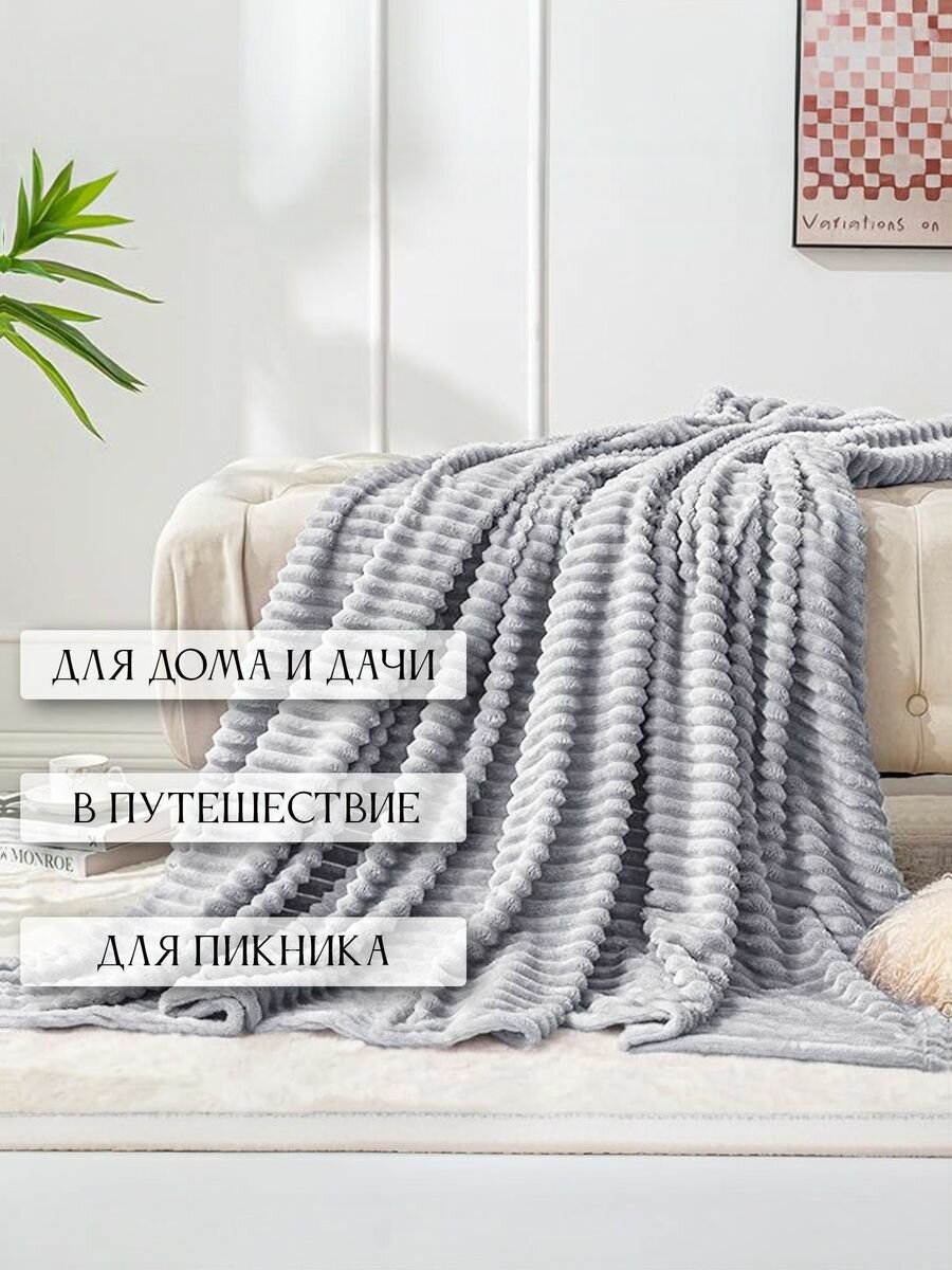 Плед плюшевый 330 гр/м2, 150х200см, 1,5-спальный, светло-серый, мягкий велсофт, МатрасОптТорг 1 690 ₽