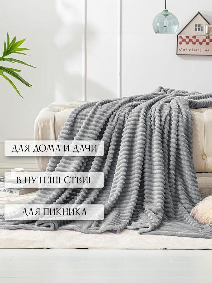 10 цен на Плед плюшевый 330 гр/м2, 150х200см, 1,5-спальный, темно-серый, мягкий велсофт, МатрасОптТорг