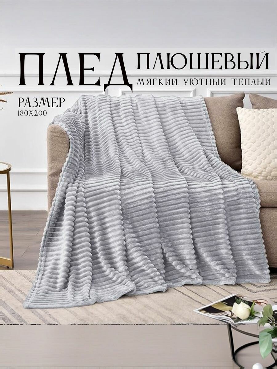 Отзывы на Плед плюшевый 330 гр/м2, 180х200см, 2-спальный, светло-серый, мягкий велсофт, МатрасОптТорг