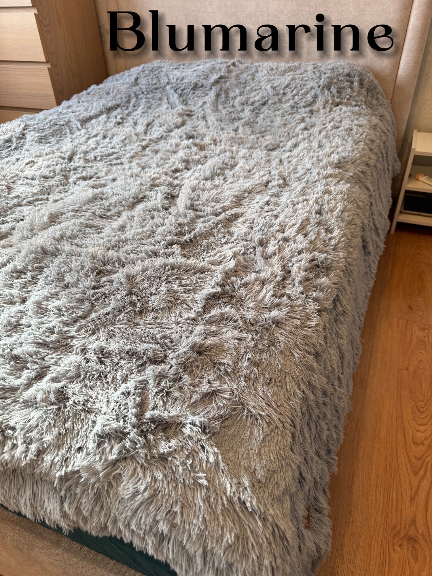 Отзывы на Плед-покрывало Blumarine "Мех-травка" мягкий на кровать, серый