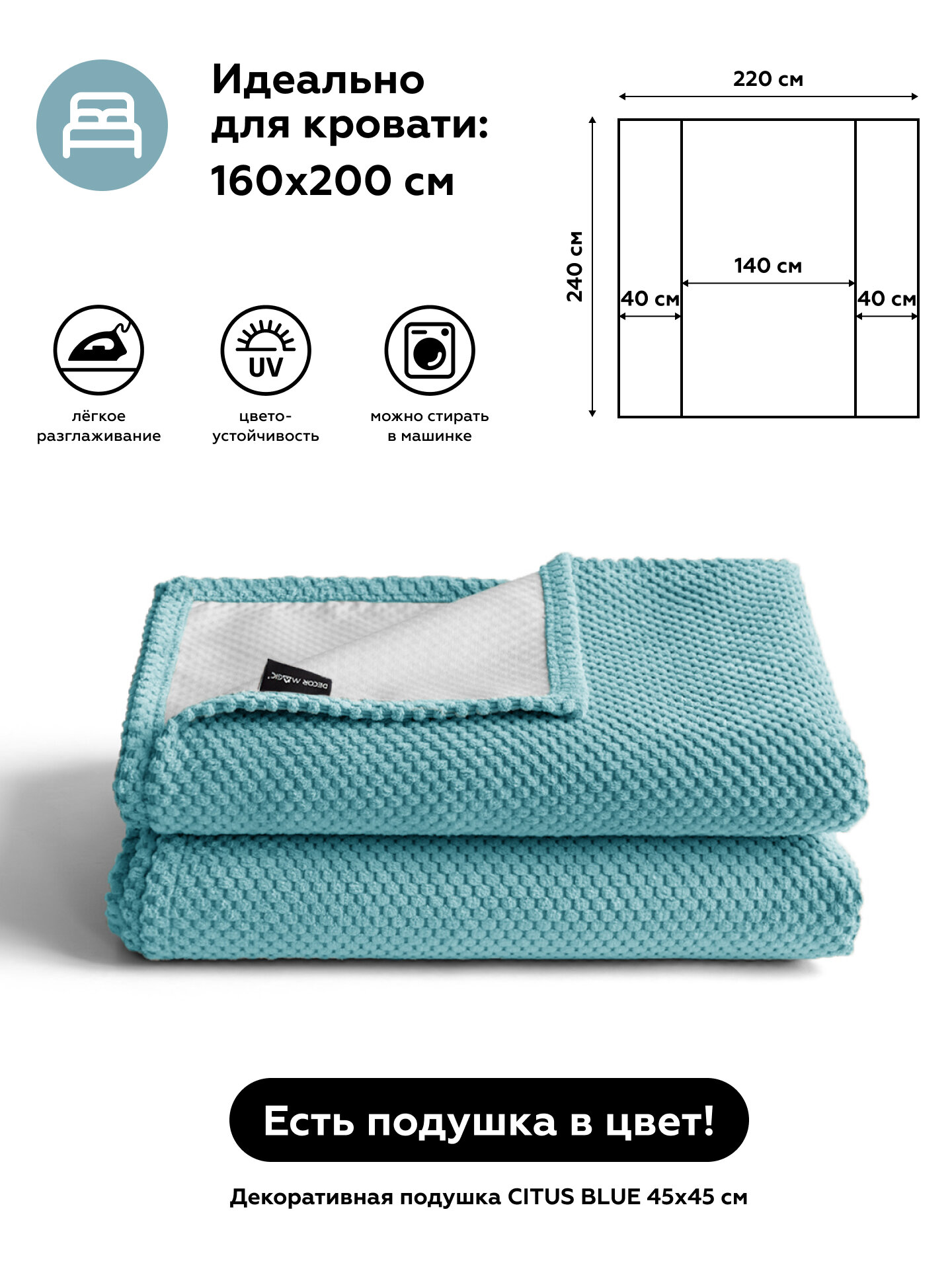 Покрывало DUO CITUS BLUE 220x240 см в спальню информация: