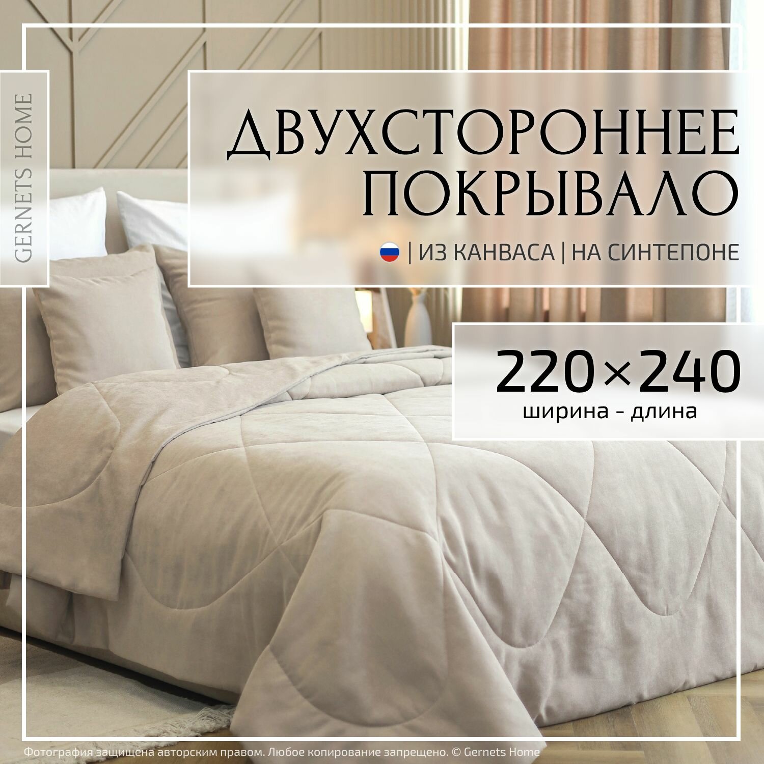 Двустороннее стеганое покрывало 220х240 см на кровать из канваса, 2 в 1 информация: