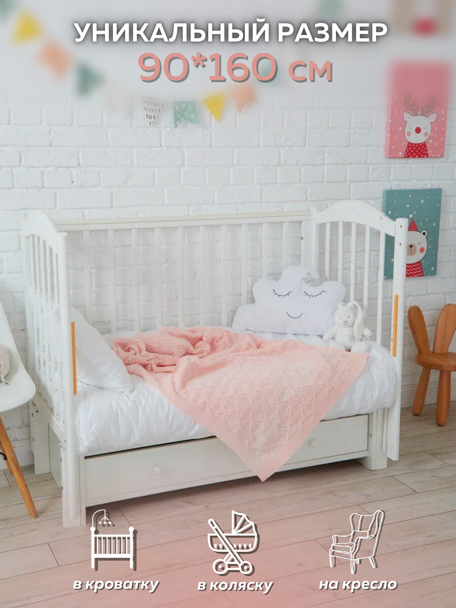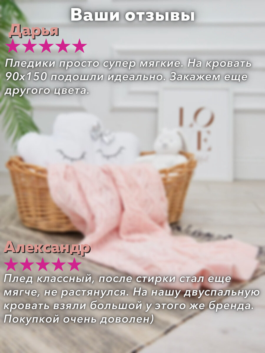 Отзывы на Плед-покрывало вязаный хлопковый на односпальную кровать детский , покрывало вязаное AlmaForHome 90x160см / сердечки / светло-розовый