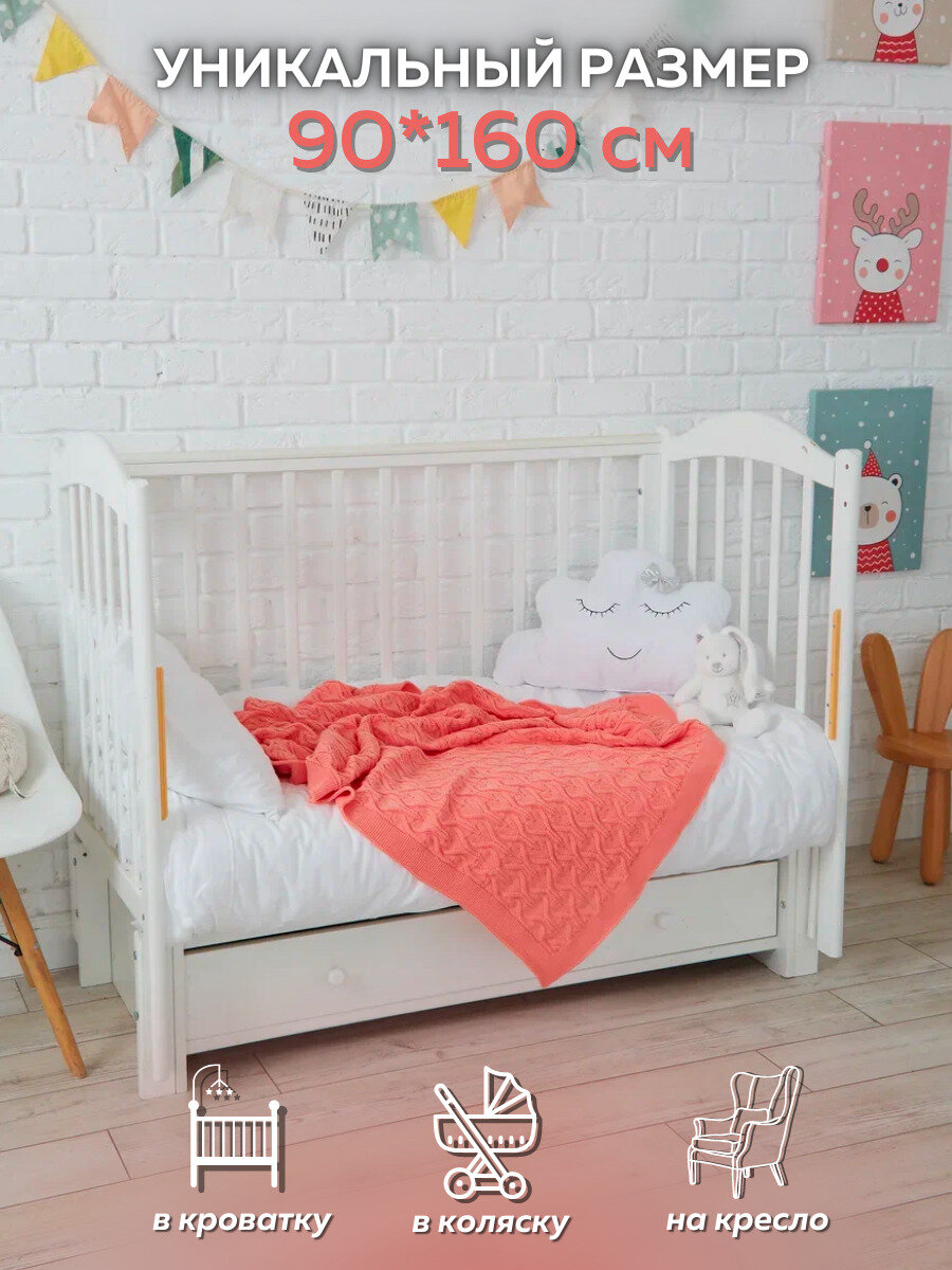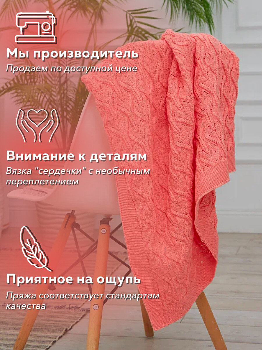 Отзывы на Плед-покрывало вязаный хлопковый на односпальную кровать детский , покрывало вязаное AlmaForHome 90x160см / сердечки / коралловый