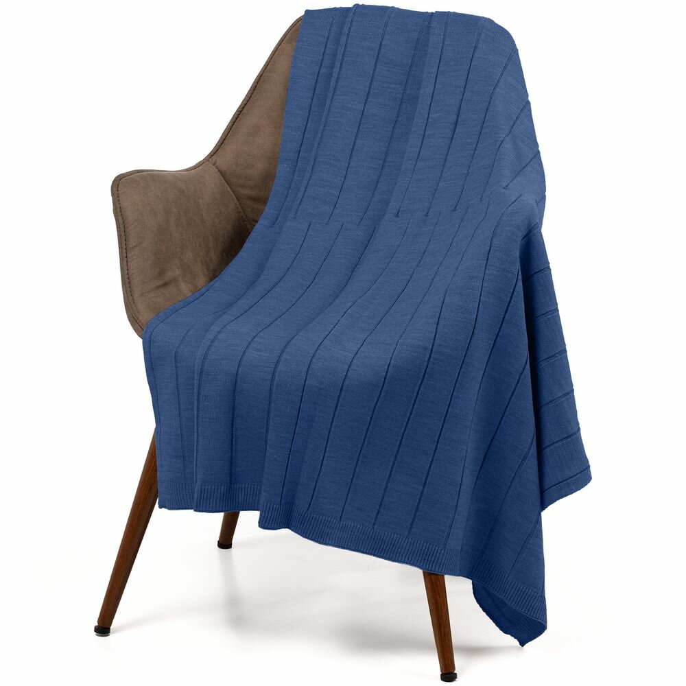 Плед покрывало на диван вязанный акриловый синий 90х160 см, подарочный