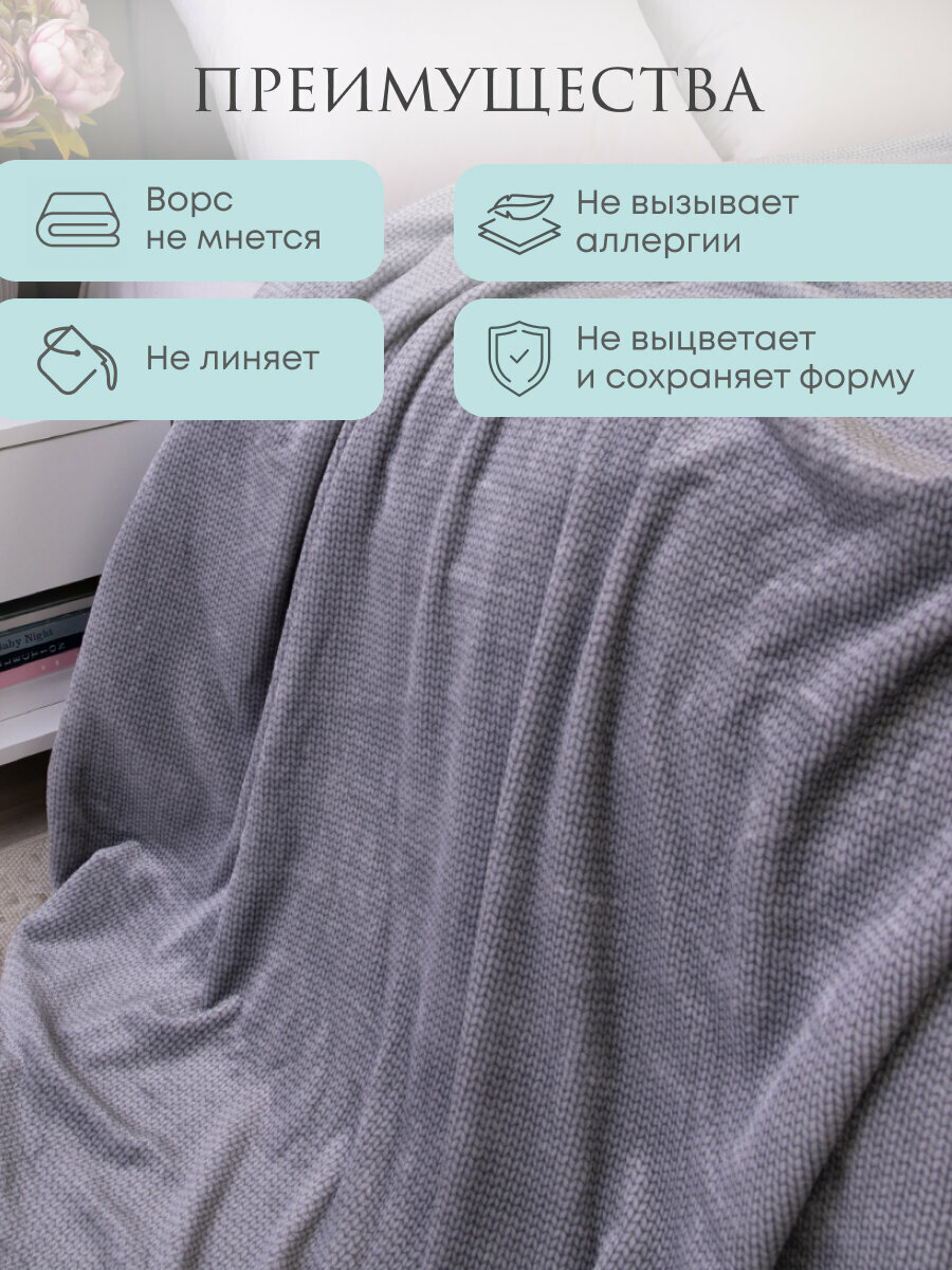 Отзывы на Покрывало 240х260, Tessolo Home, на кровать диван плюшевое плед, MICRO VELUR, "Винтаж", серый