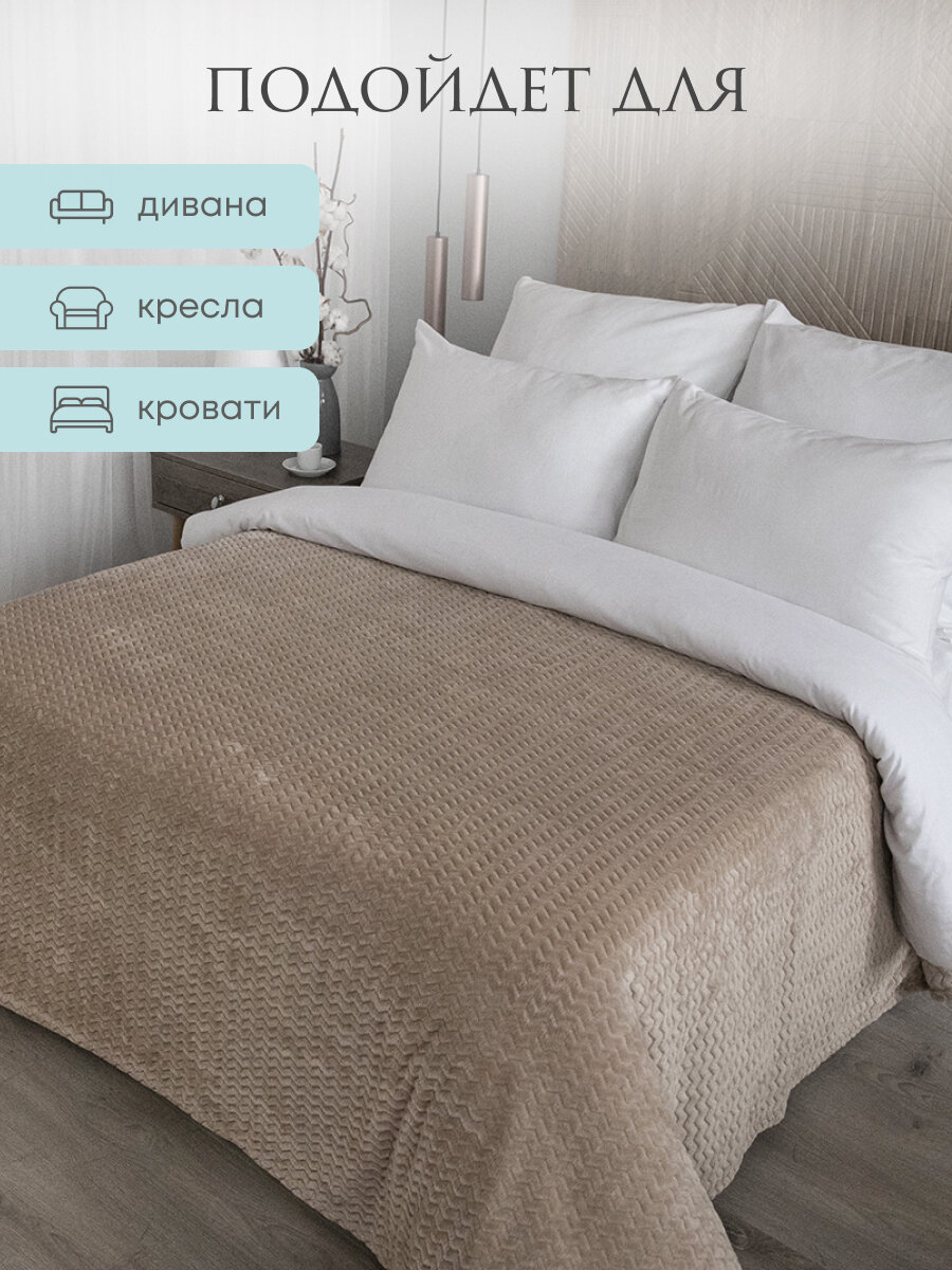 Отзывы на Покрывало 240х260 на кровать диван плюшевое плед, Tessolo Home, "Волна", бежевый