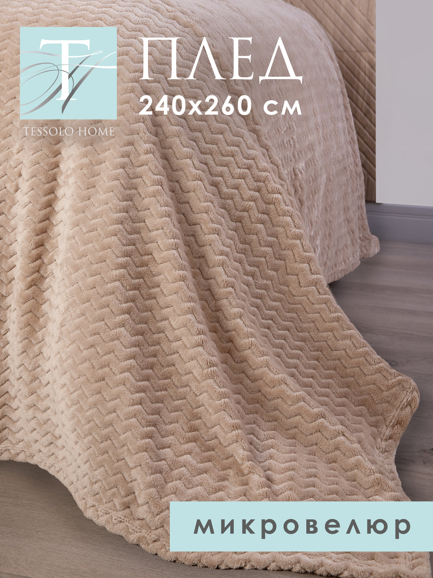 Покрывало 240х260 на кровать диван плюшевое плед, Tessolo Home, "Волна", бежевый информация:
