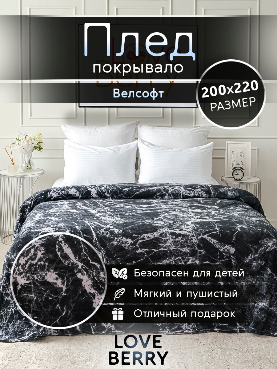 Отзывы на Плед 200х220 LOVEBERRY Евро из велсофта на кровать и диван, черный мрамор