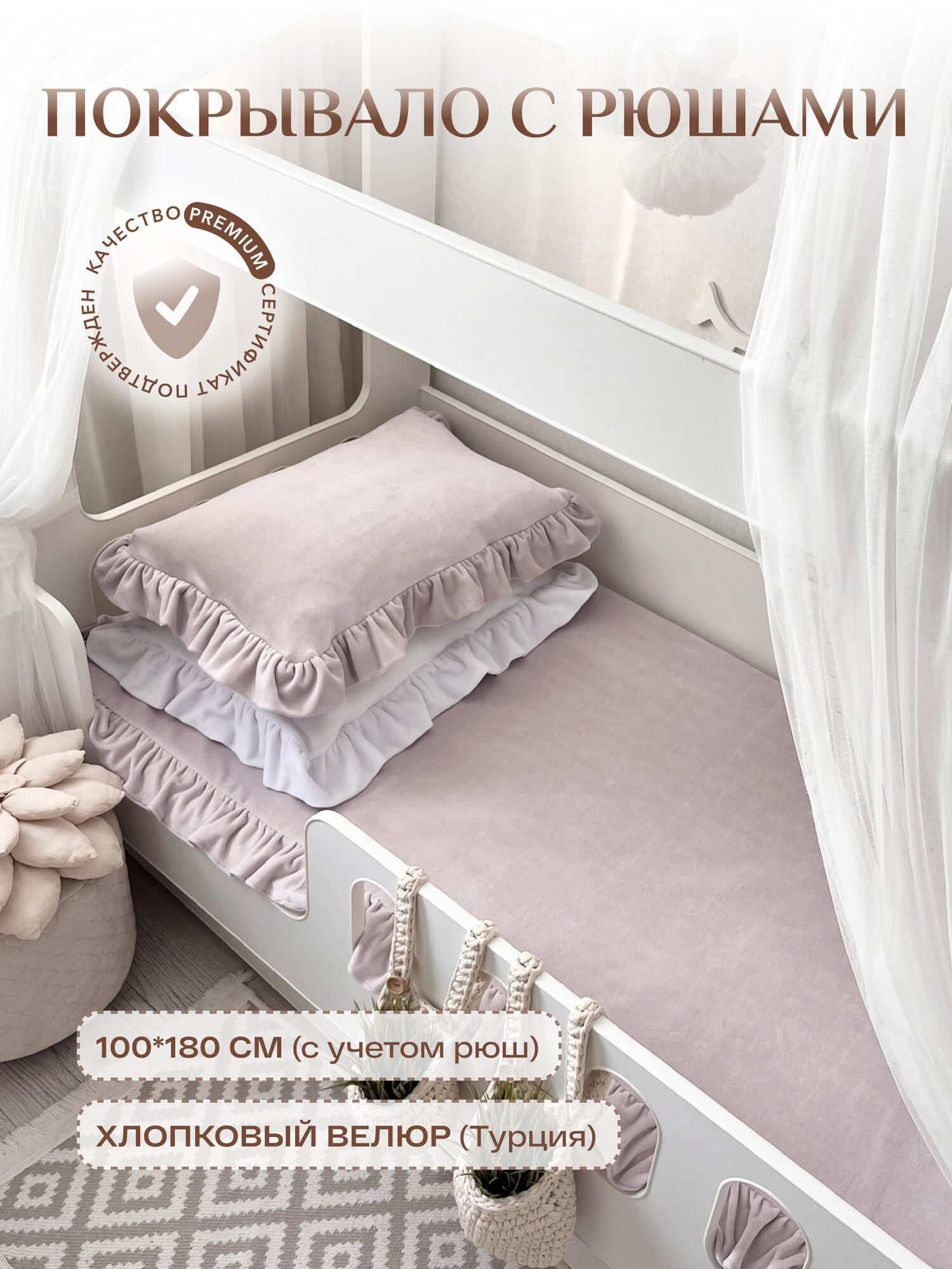 10 цен на Покрывало 100х180 см (с учетом рюш) детское из велюра на кровать, диван - опал