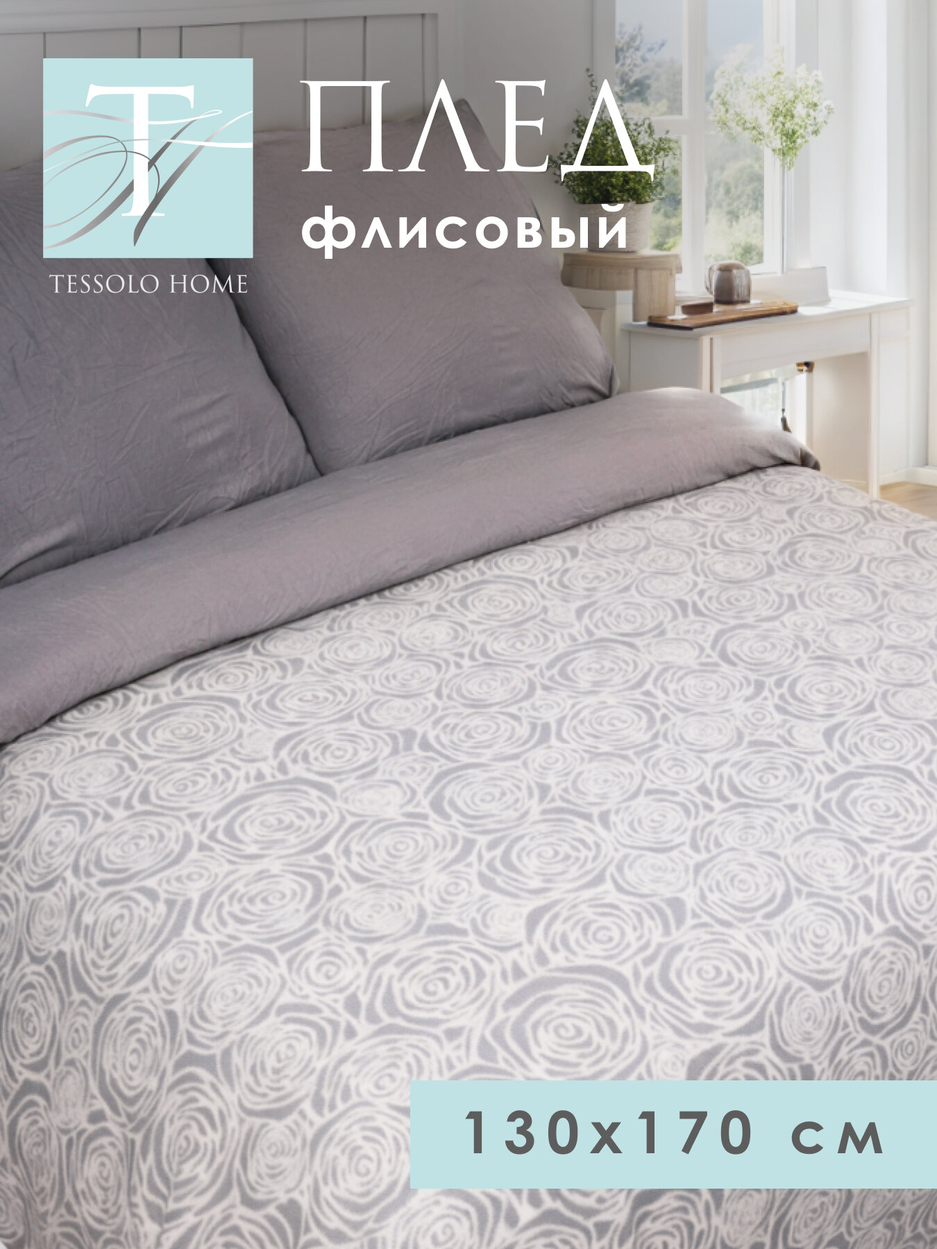 Отзывы на Плед флисовый 130х170, Tessolo Home, на кровать для пикника, Розы серый
