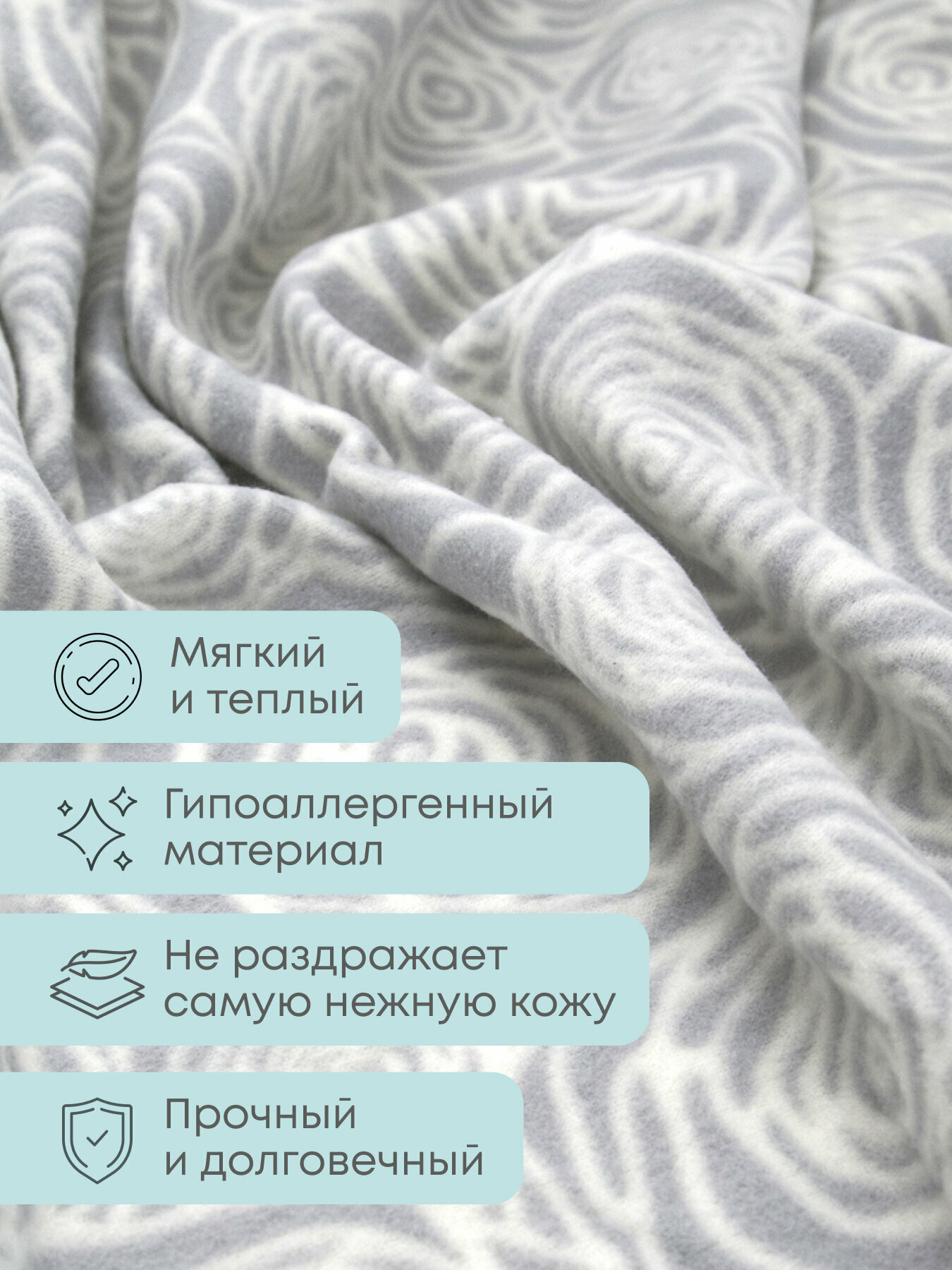 Плед флисовый 130х170 на кровать для пикника, Tessolo Home, "Виньетки", серый 611 ₽