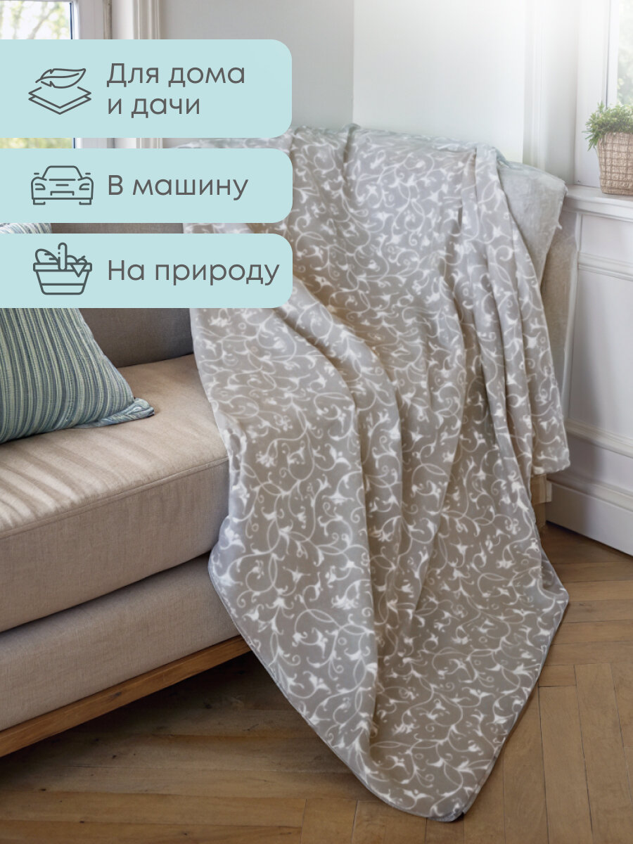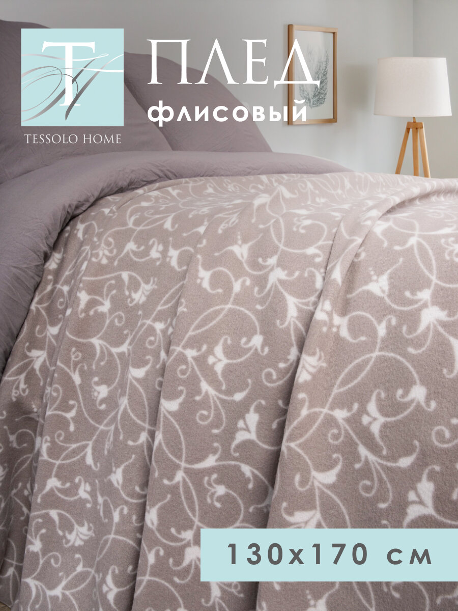 Отзывы на Плед флисовый 130х170 на кровать для пикника, Tessolo Home, "Виньетки", серый