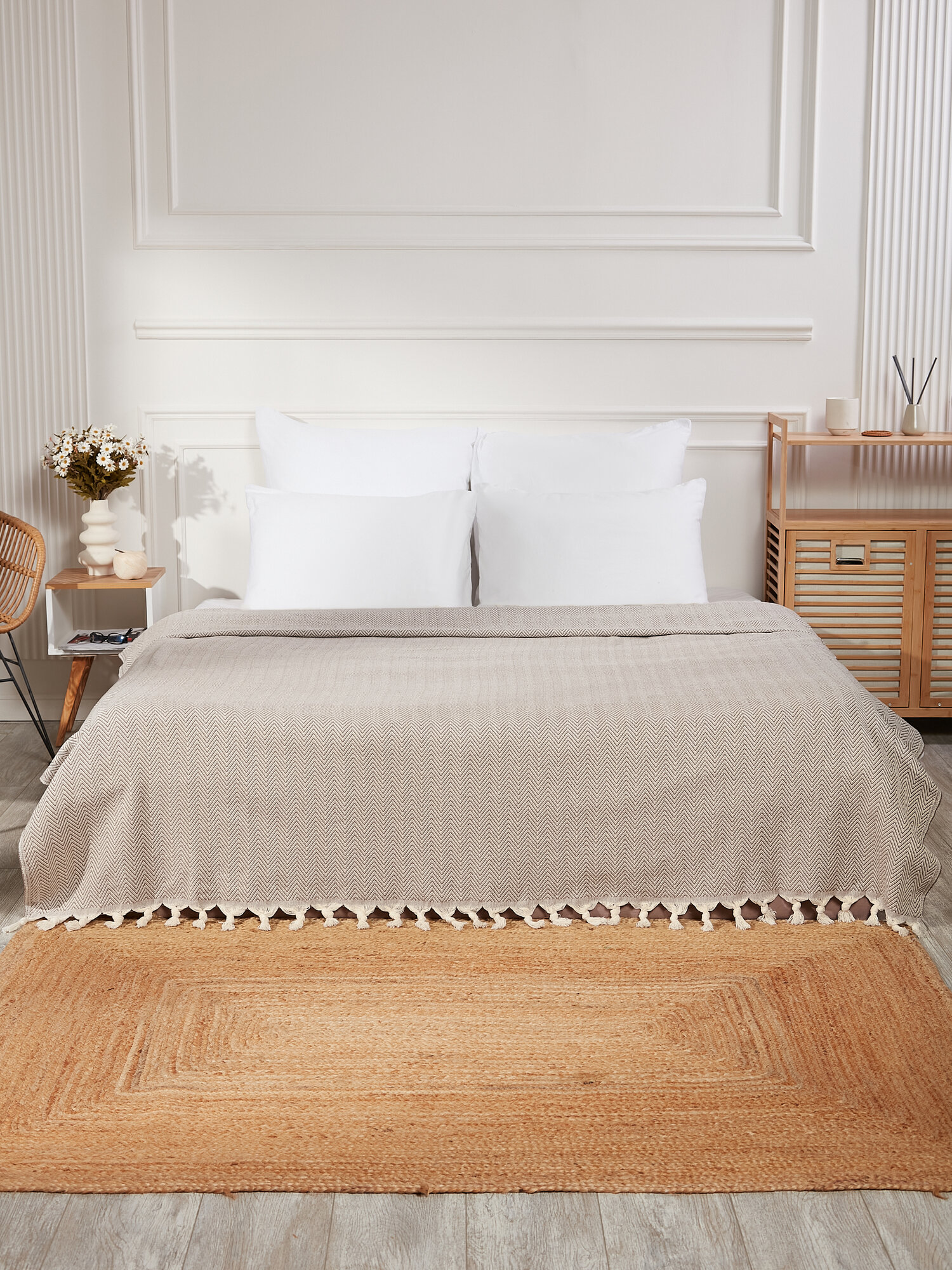 Хлопковый плед-покрывало на кровать и диван, 200х230, бежевый, Турция 2 956 ₽