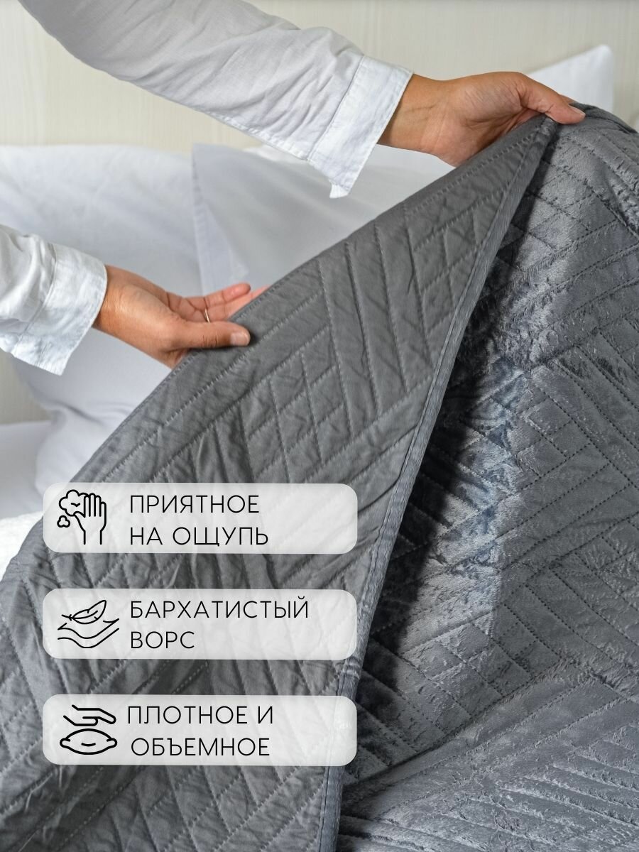 Покрывало на кровать 240х260 см с наволочками велюр MAXI ADRIA SMOKE