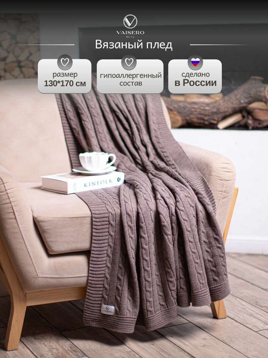 Плед VAISERO Home, акриловый, вязаный, серо-коричневый, 130 см x 170 см информация: