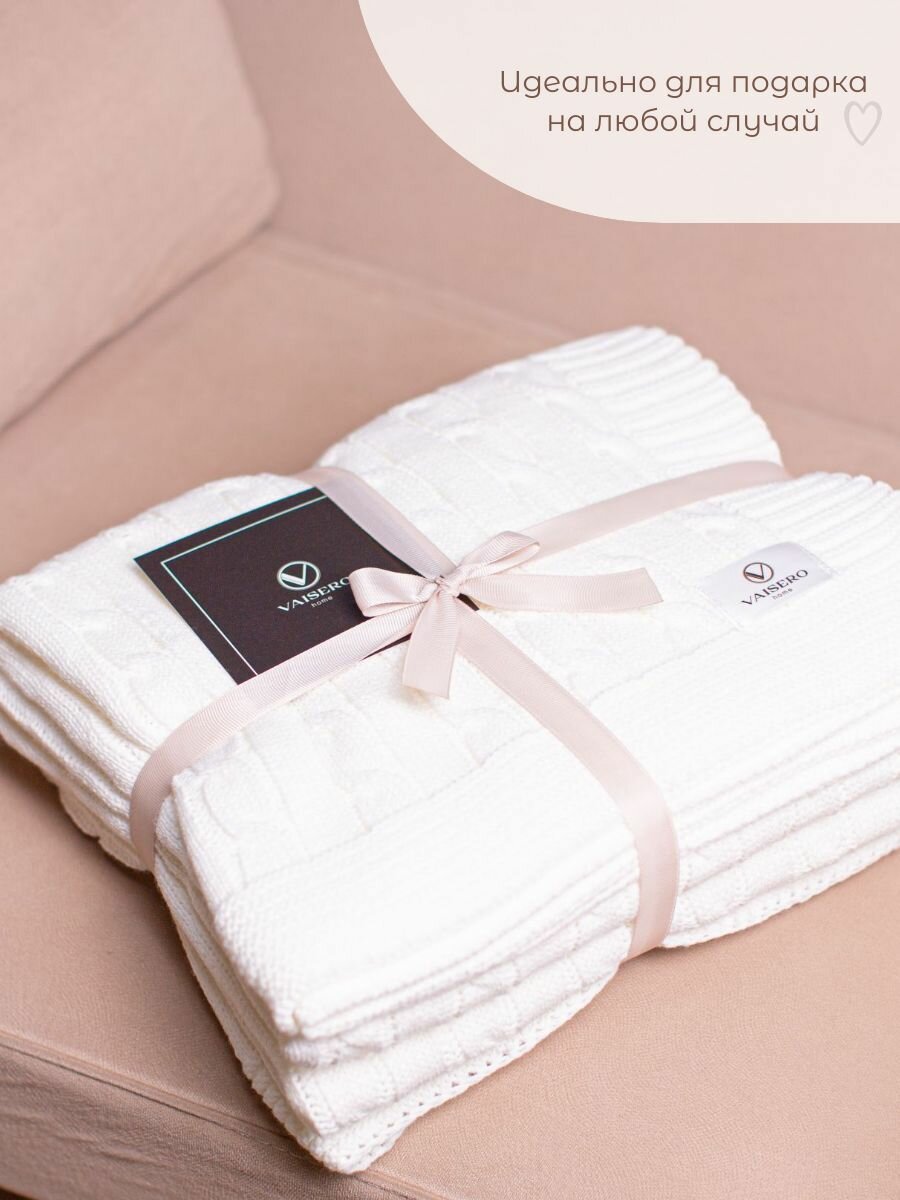 Плед VAISERO Home, молочный, акрил, вязаный, 130x170см информация: