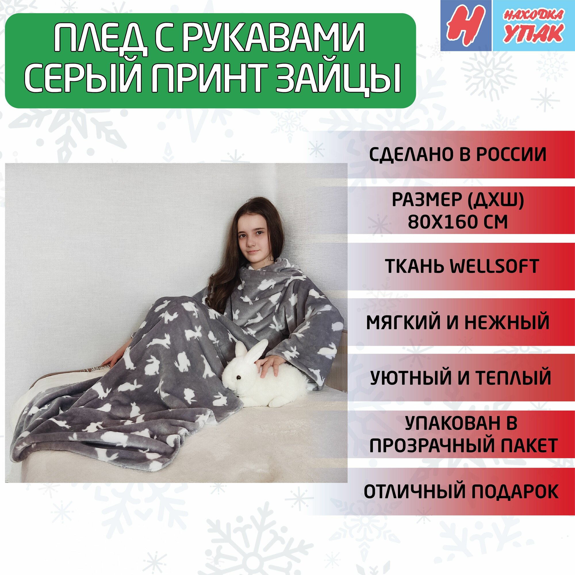 10 цен на Плед с рукавами "НаходкаУпак" Велсофт Серый Принт Зайцы 80х160см