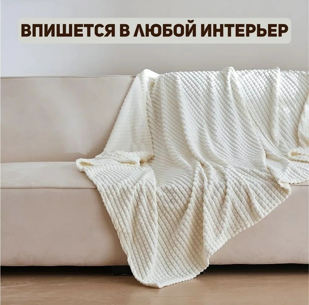 10 цен на Плед 200х220, Покрывало на кровать, молочный, Велсофт, Пушистый плед на диван, Накидка