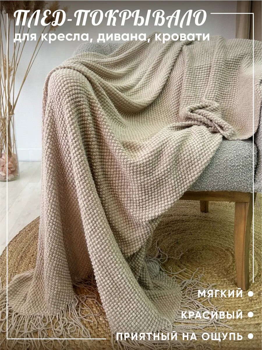 Отзывы на Плед Evium на диван кровать вязаный 127х170 с бахромой, скандинавский стиль, интерьерный