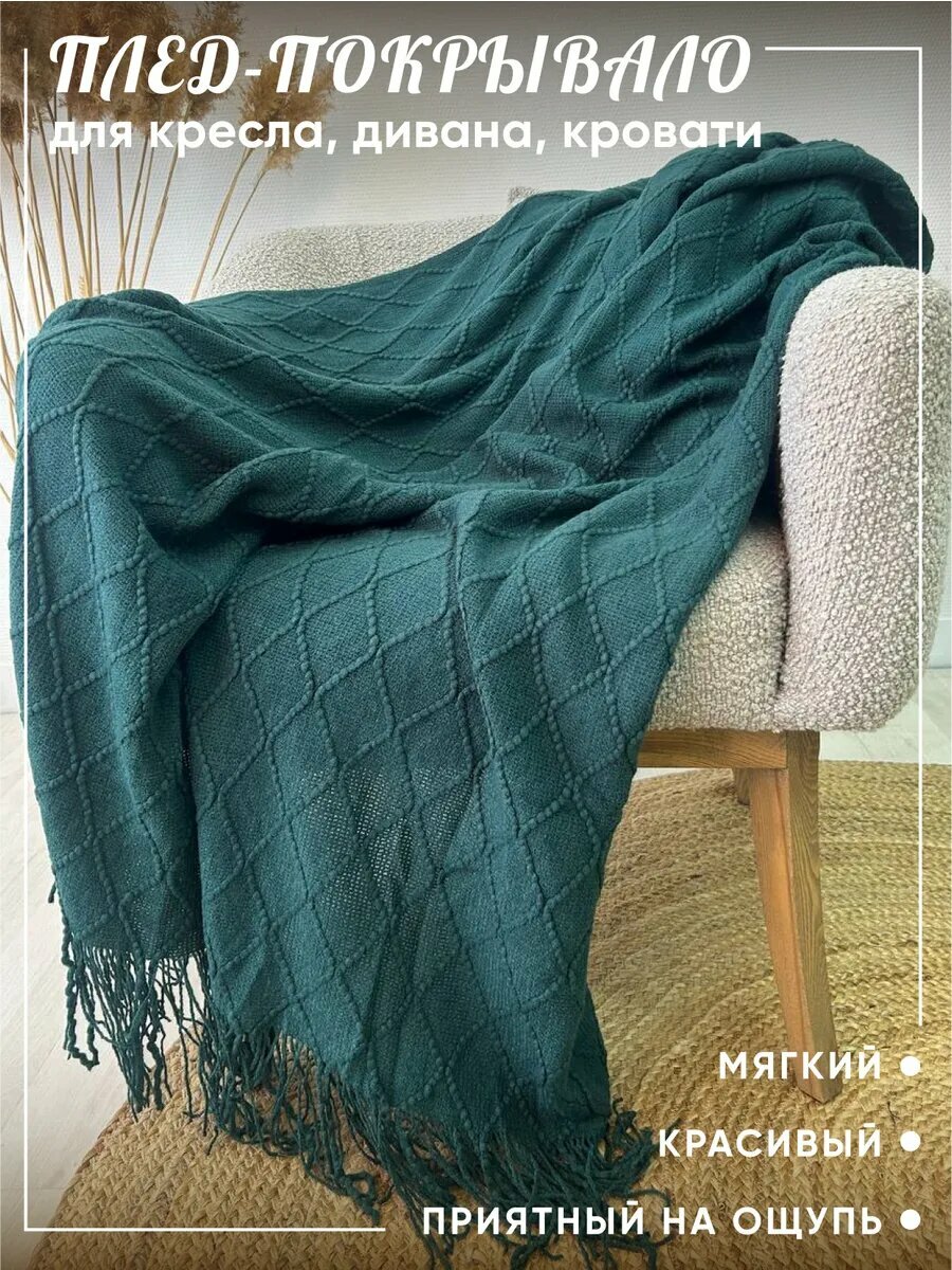 10 цен на Плед Evium, акрил, 127x180см, вязаный, рельефный, изумрудный