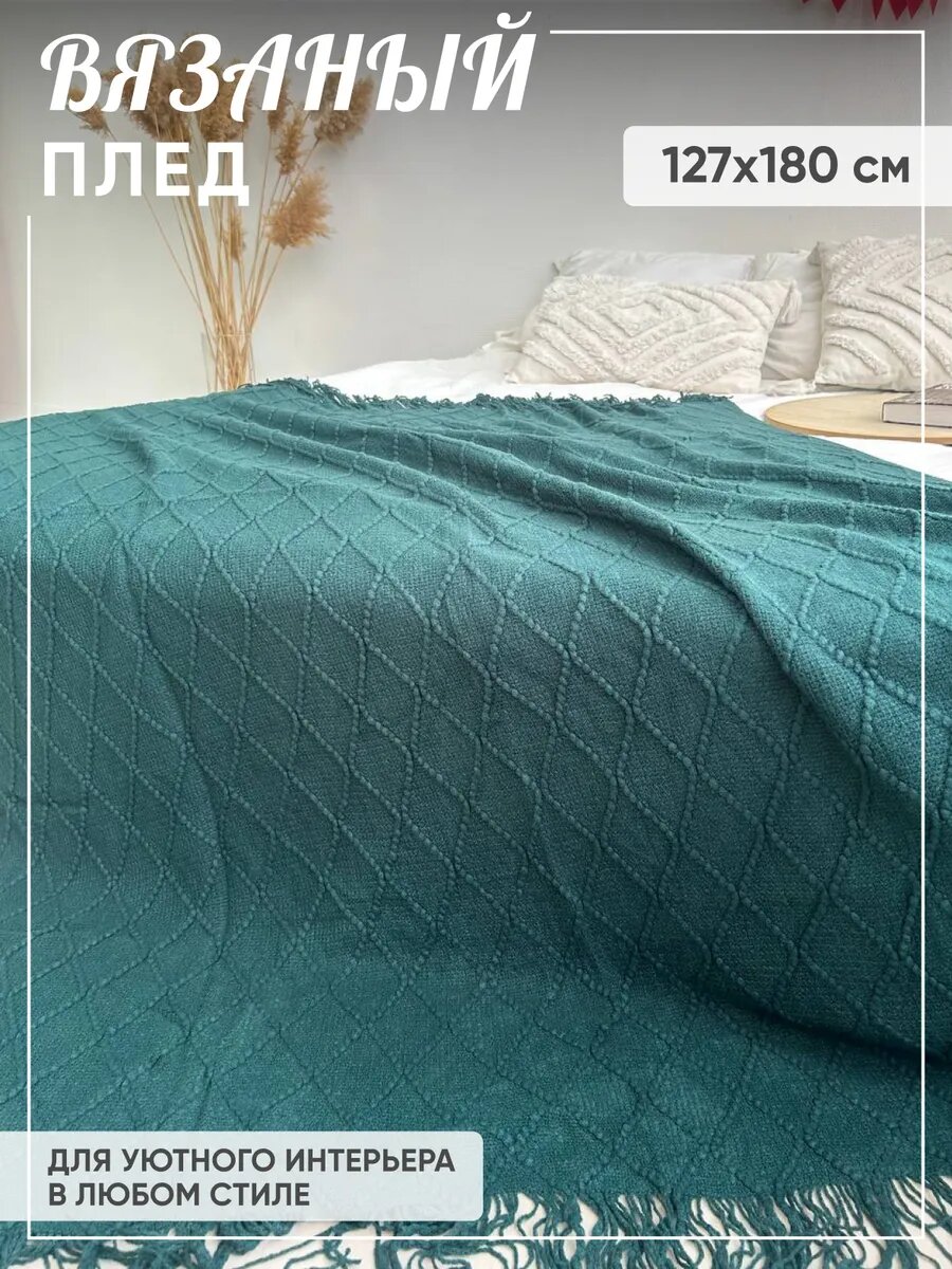 Плед Evium, акрил, 127x180см, вязаный, рельефный, изумрудный информация: