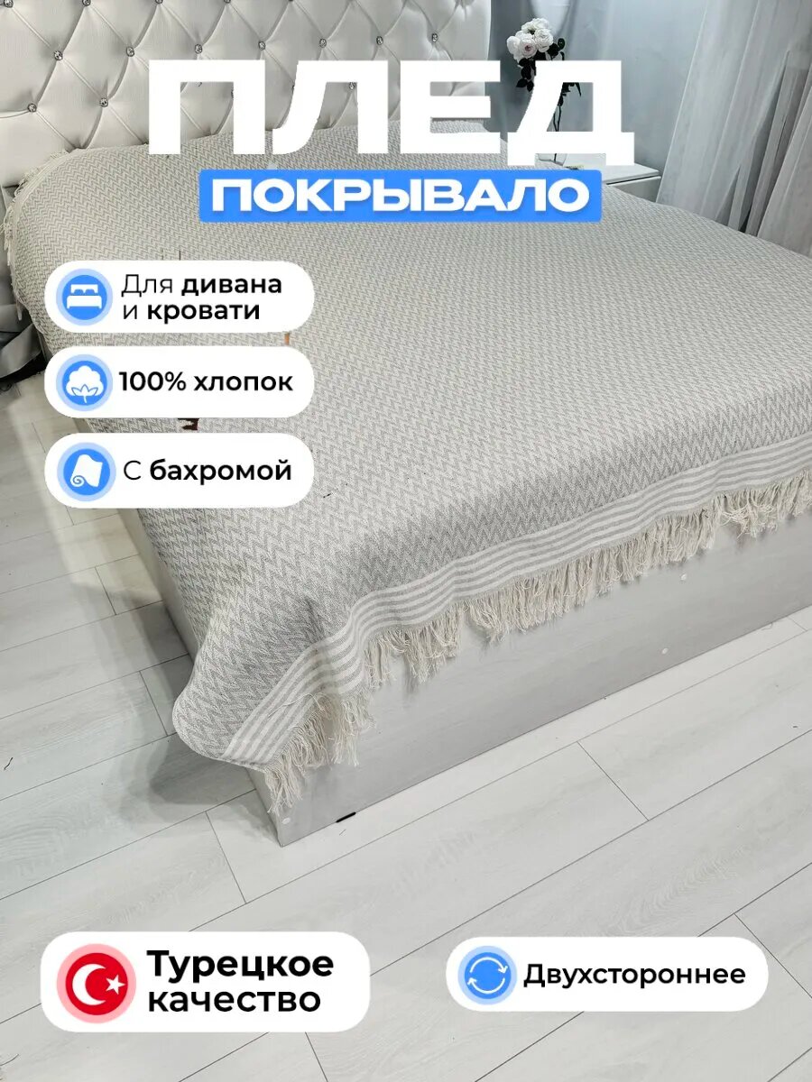 Плед - покрывало хлопковый вязаный двусторонний размером 220х240 см на кровать и диван 3 218 ₽