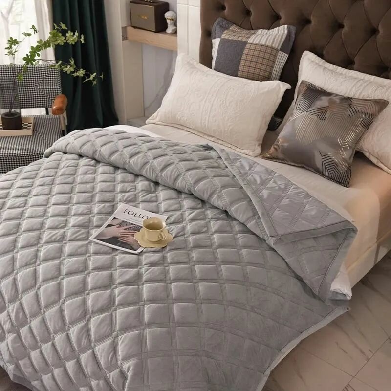 Покрывало на кровать 240х260 см с наволочками велюр MAXI ADRIA SMOKE