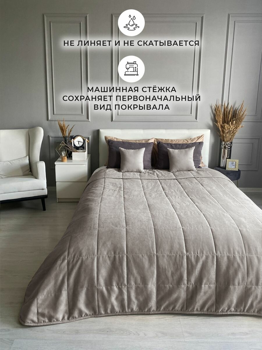 Покрывало на кровать стеганое 220х240 см канвас IRISHOME, серо-бежевое информация:
