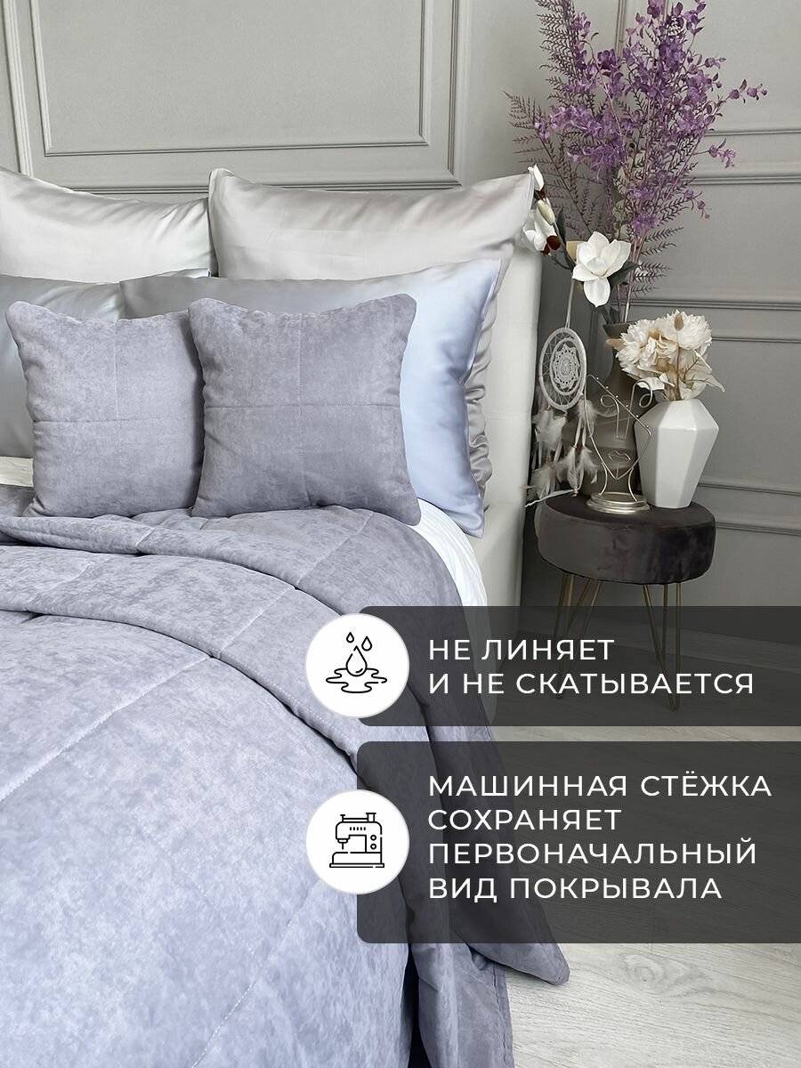 Покрывало на кровать 240х260 см с наволочками велюр MAXI ADRIA SMOKE
