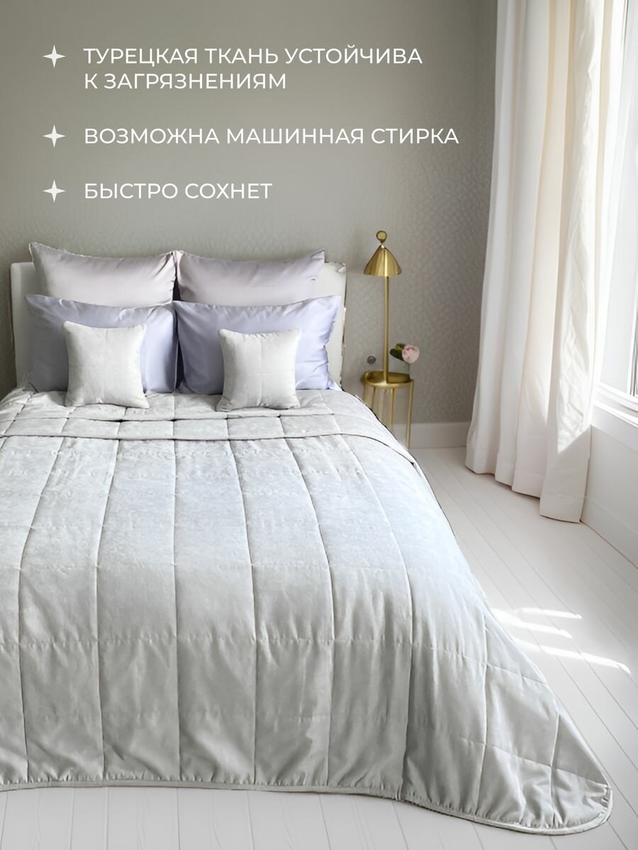 Покрывало на кровать стеганое 220х240 см канвас IRISHOME, светло-серое информация: