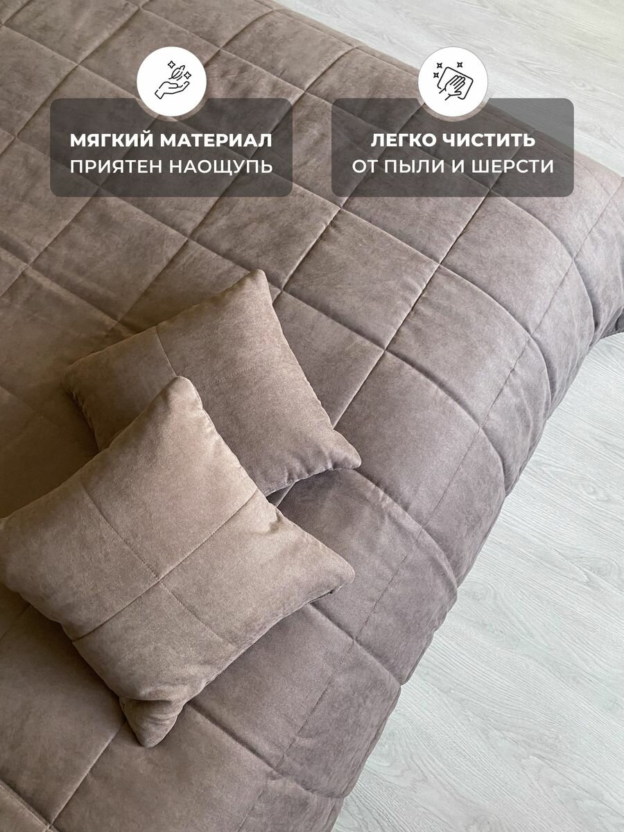 Покрывало на кровать 240х260 см с наволочками велюр MAXI ADRIA SMOKE