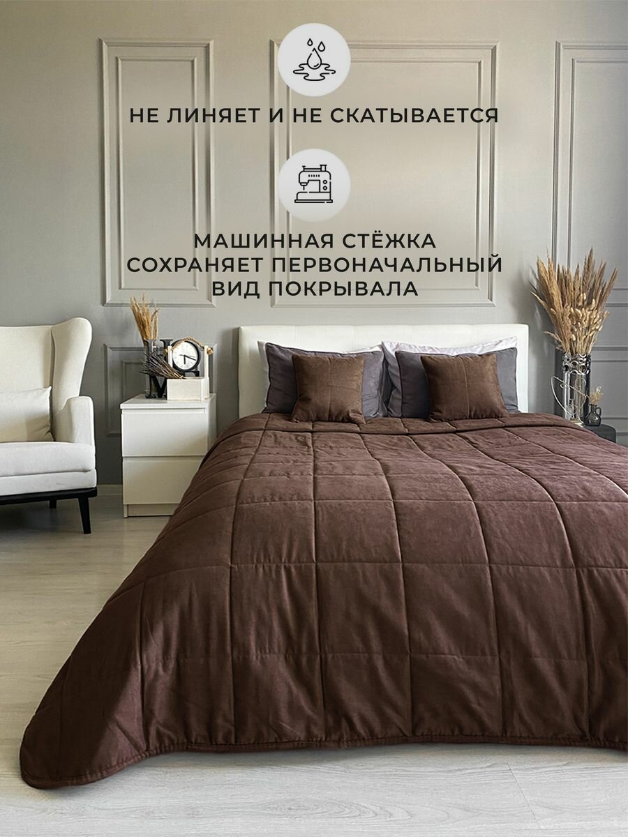 Покрывало на кровать стеганое 220х240 см канвас IRISHOME, шоколадное информация: