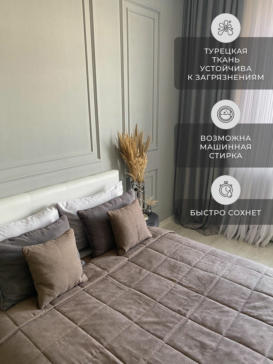 Покрывало на кровать 240х260 см с наволочками велюр MAXI ADRIA SMOKE