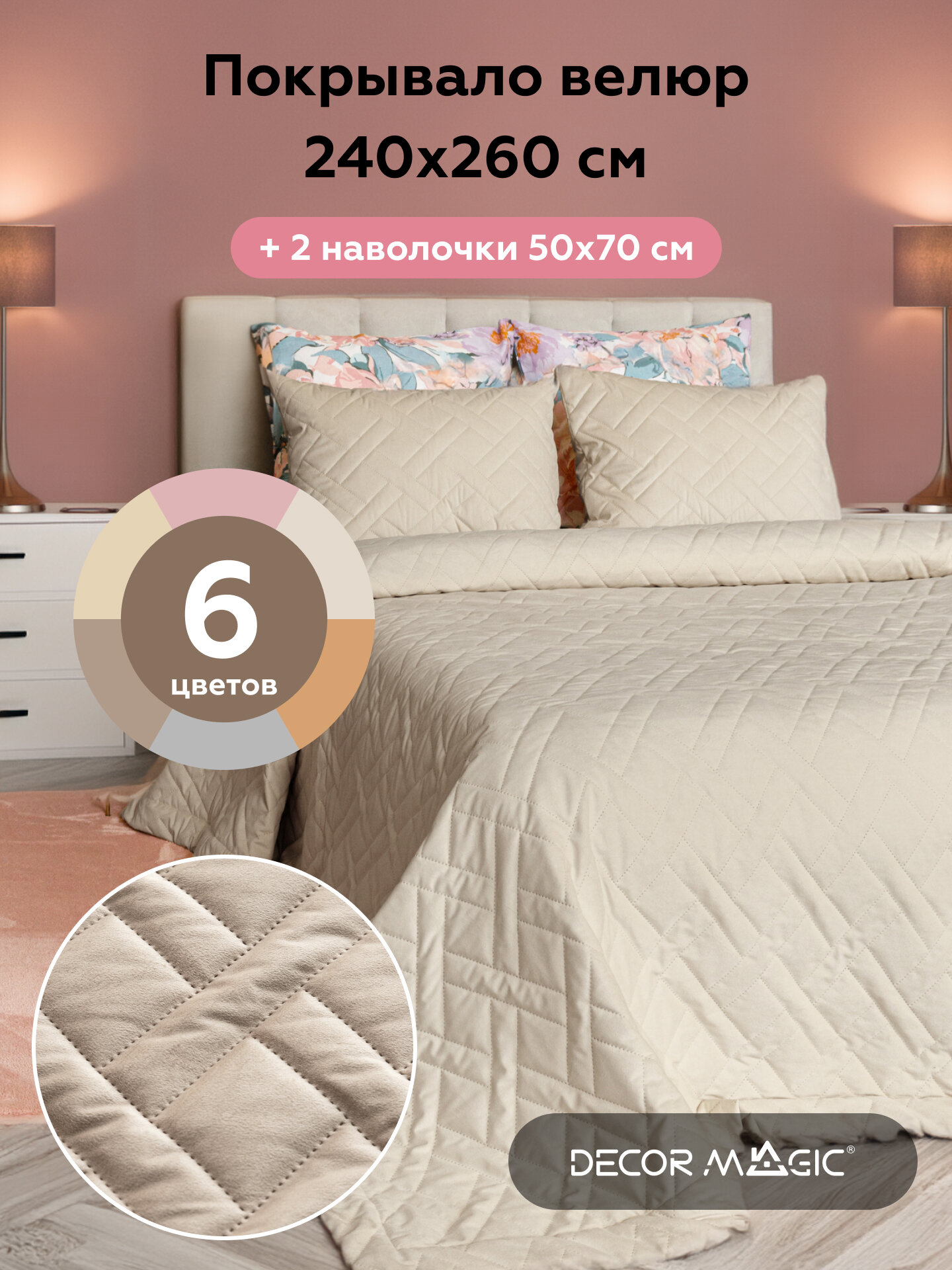 Покрывало с наволочками 50х70 см, велюр MAXI ADRIA BONE 240х260 см 5 061 ₽