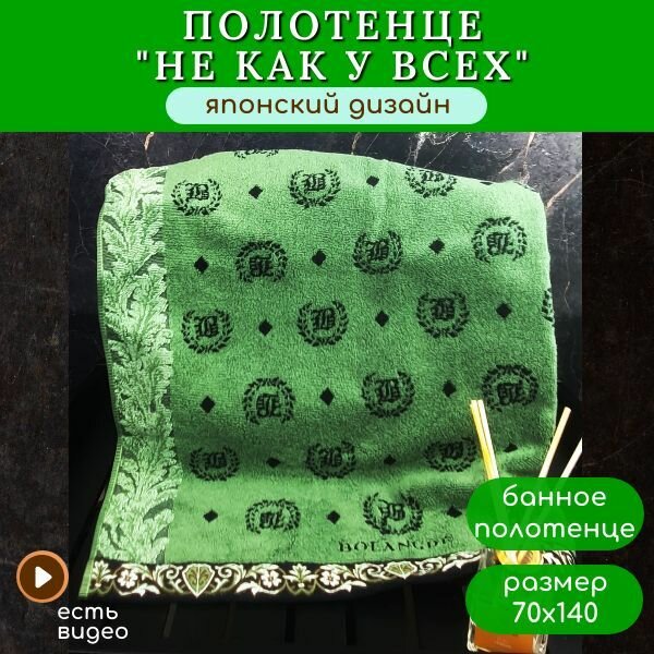 Полотенце для ванной махровое банное большое, велюровое BOLANGDE, 100% хлопок, Япония Лого 70х140, зеленый 1 шт. информация: