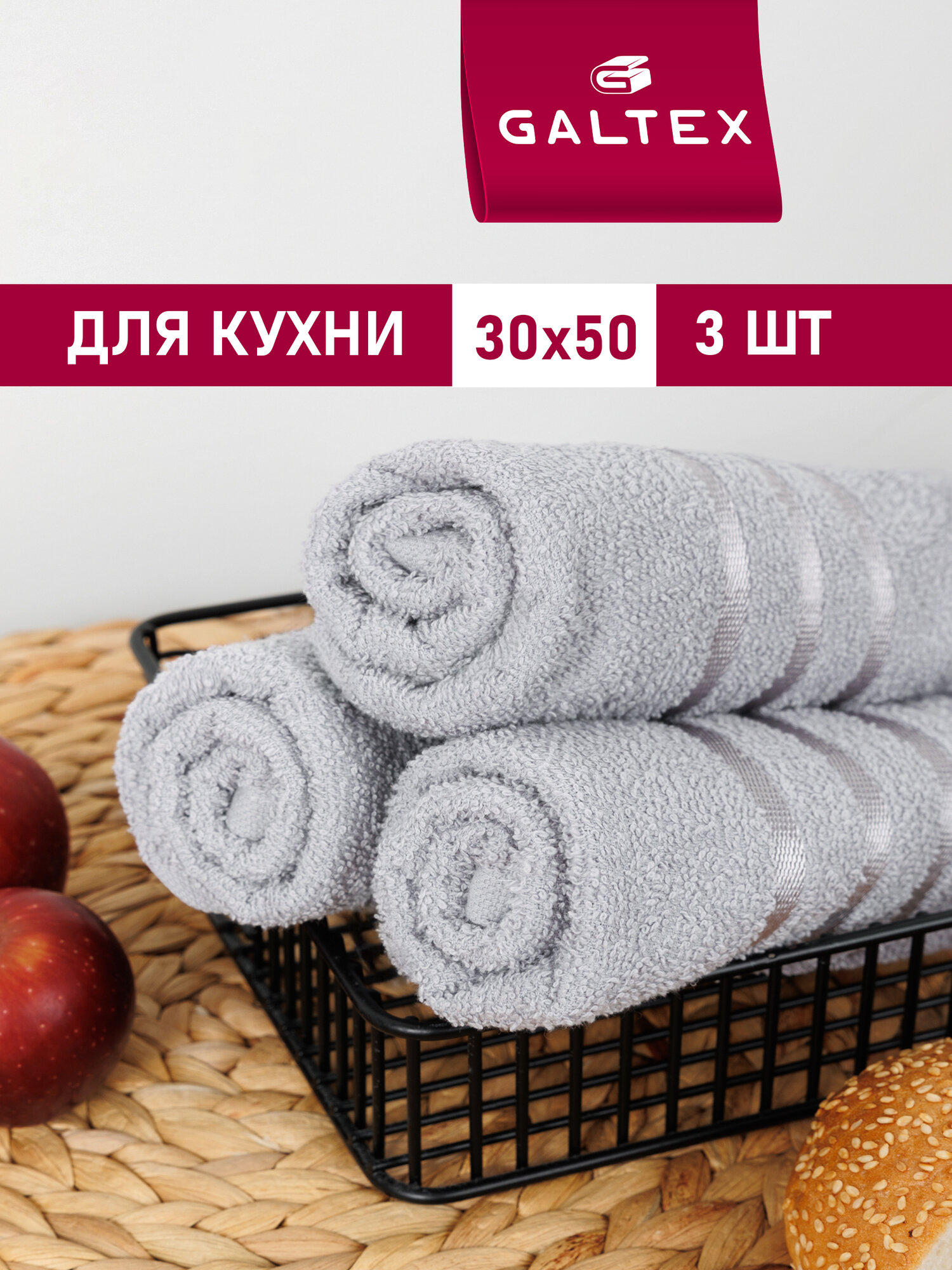 10 цен на Полотенце махровое кухонное 3 шт 30х50 Galtex Классико светло-серый