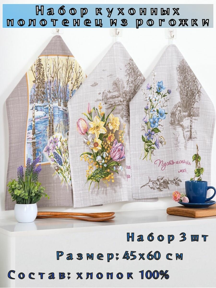 10 цен на Кухонные полотенца набор / Комплект полотенец / Полотенца для кухни 3 шт / 45х60 см / рогожка