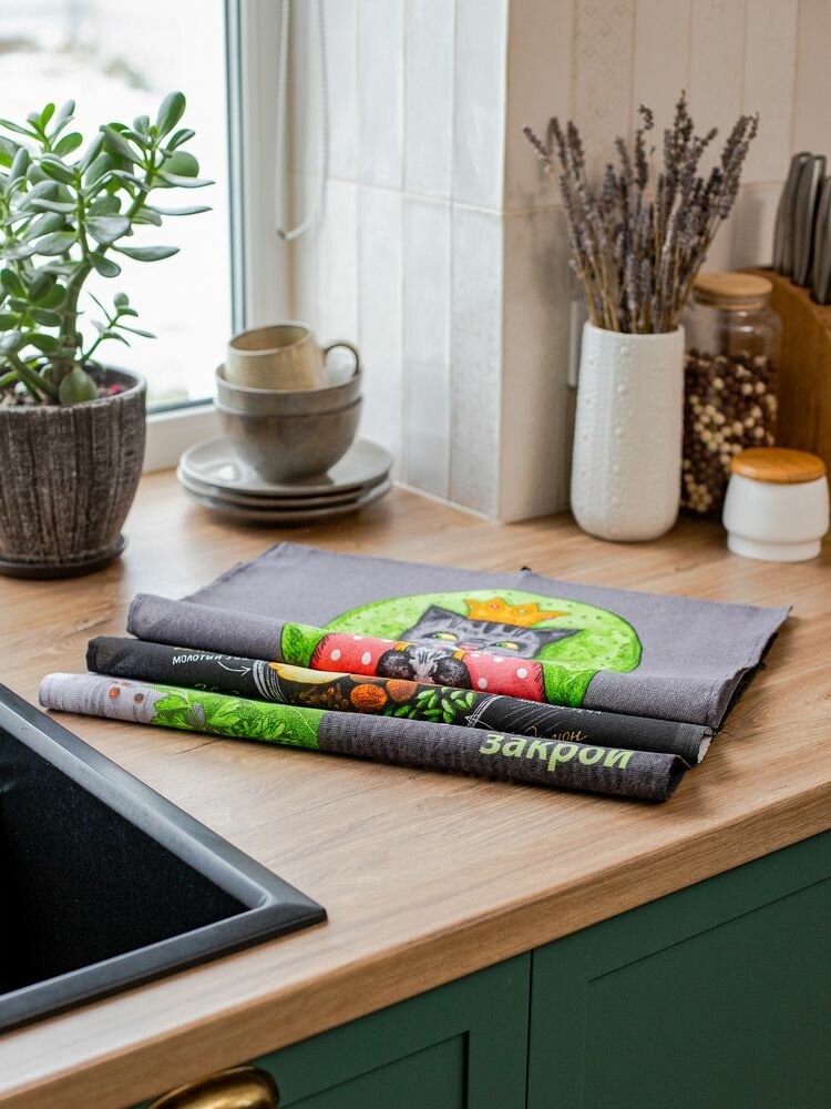 Комплект полотенец 48*60 см, 3 шт, рогожка (Котики) 501 ₽
