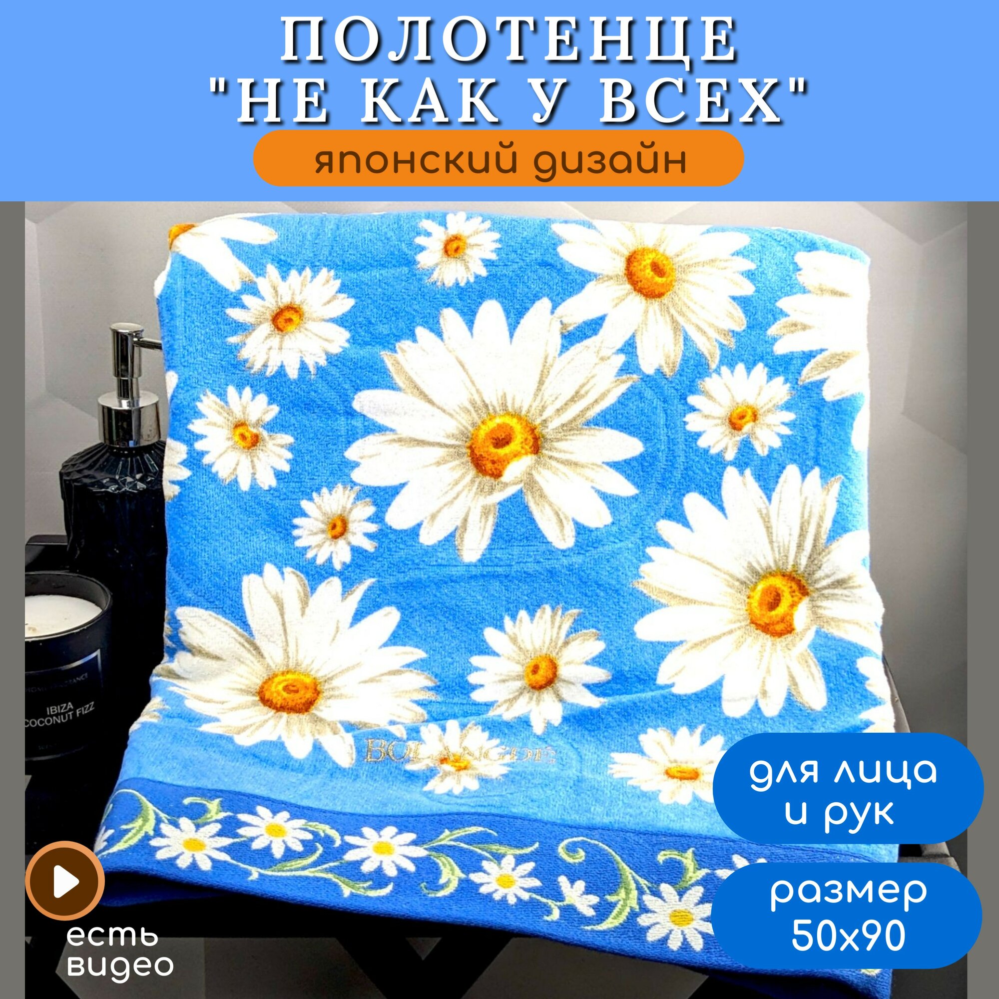 Отзывы на Полотенце для лица, рук махровое 1 шт, для детей и взрослых, для семьи BOLANGDE Япония Ромашки, синий, размер 50х90