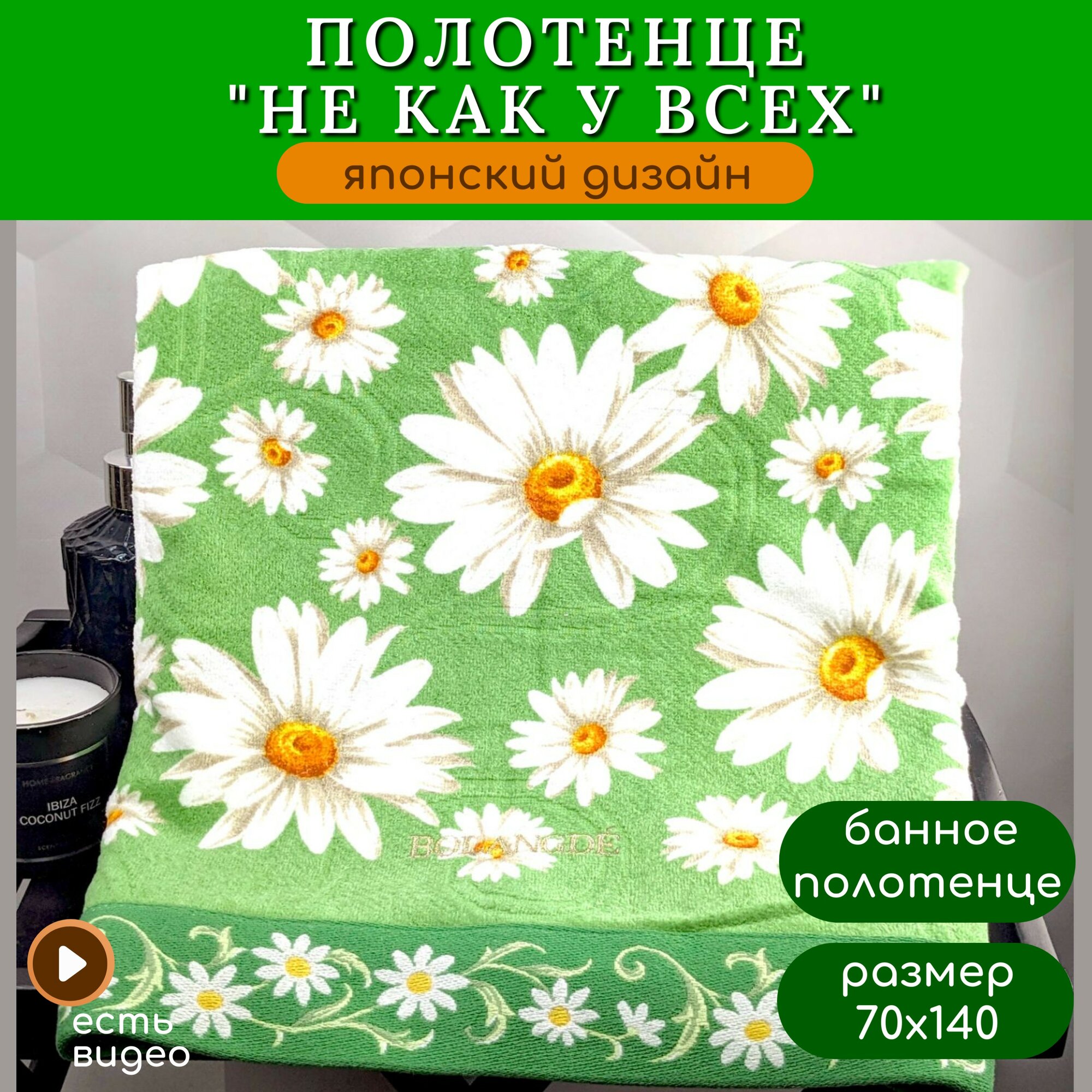 Отзывы на Полотенце для ванной махровое банное большое, велюровое BOLANGDE, 100% хлопок, рисунок цветы, Япония Ромашки 70х140, зеленый 1 шт