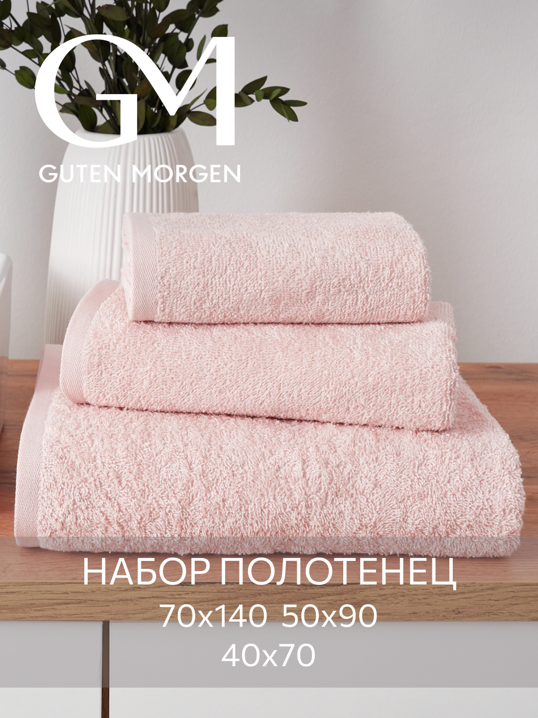 Набор полотенец махровых, Guten Morgen Пудровый 3 шт, 40х70, 50х90, 70х140, хлопок 100% 400 г/м2 информация: