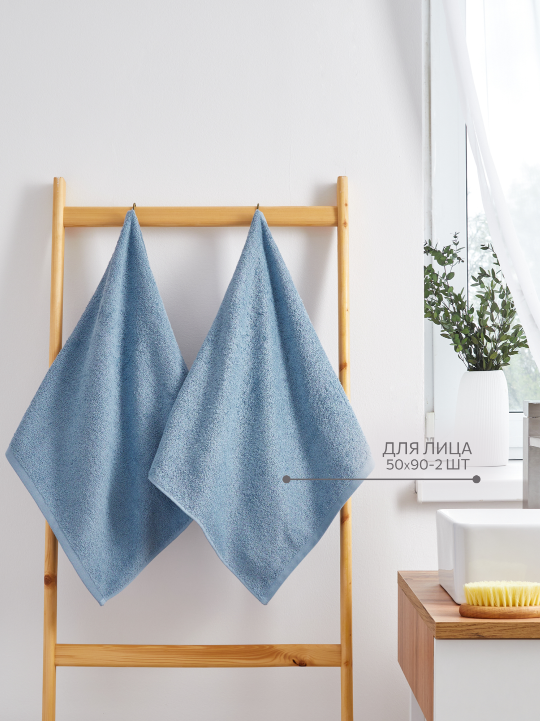 10 цен на Набор полотенец махровых, Guten Morgen, Голубой 50х90 см (2 шт.) , хлопок 100% 400 г/м2