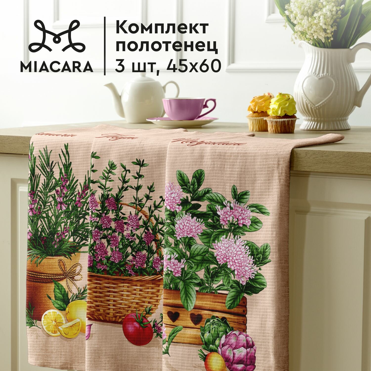 10 цен на Кухонные полотенца 3 шт 45х60 Mia Cara Condimento 30663-1