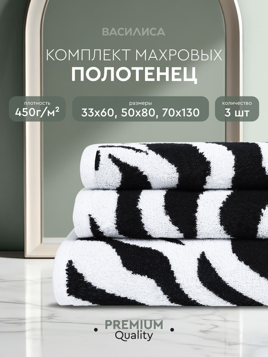 Набор махровых полотенец Василиса 33х60, 50х80, 70х130, 3шт, Зебра информация: