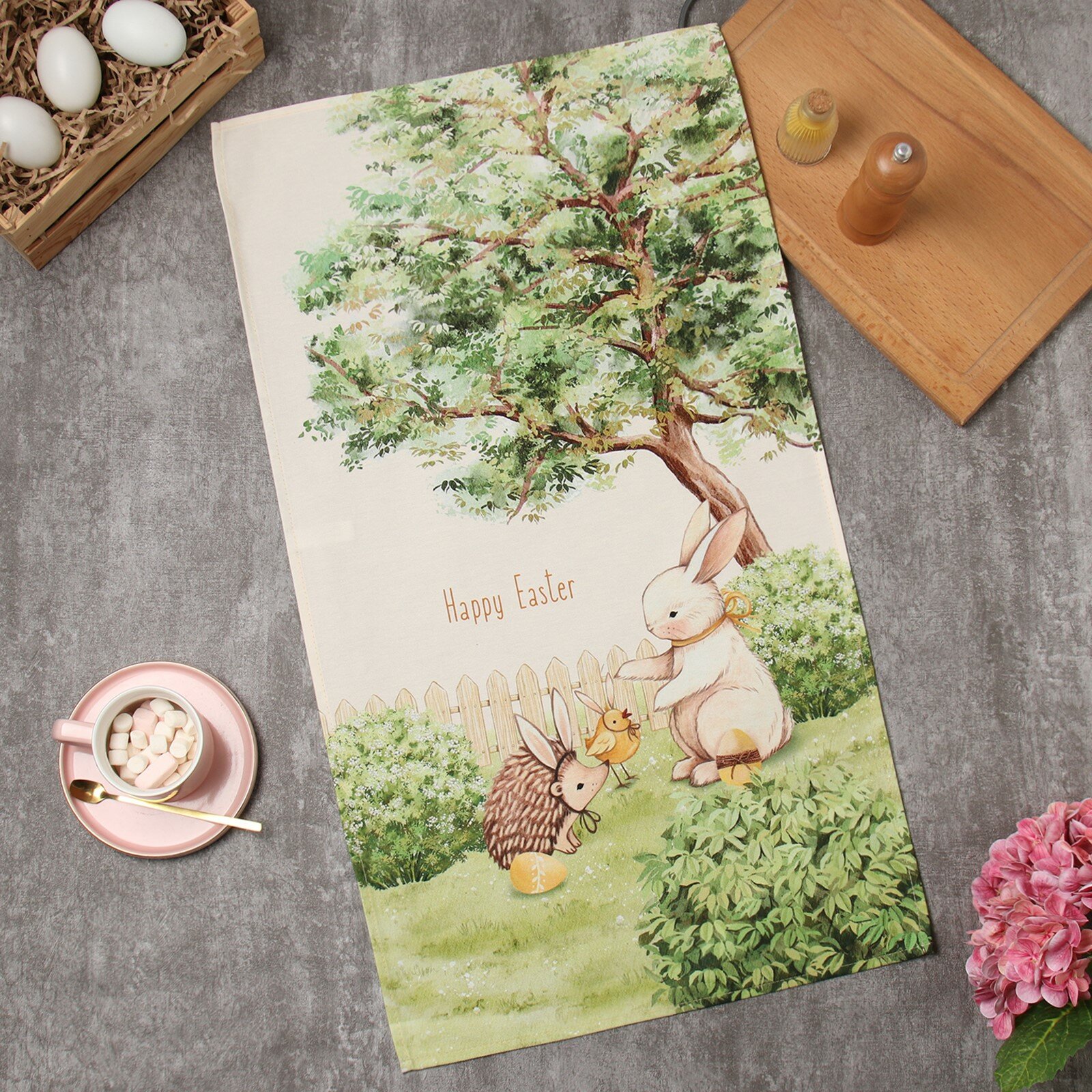 10 цен на Полотенце кух. Этель "Ёжик с зайчиком" 40х70 см, 100% хл, 190г/м2