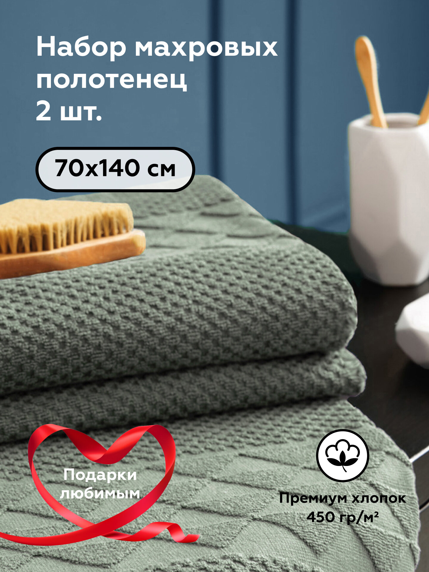 Полотенце банное 70х140 см FOCUS OLIVE 2 шт на подарок 1 219 ₽