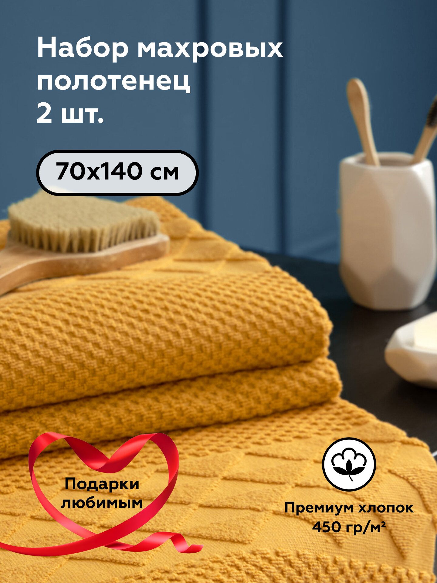 Полотенца банные, набор полотенец махровых 70х140 см 2 шт, FOCUS MUSTARD на подарок информация: