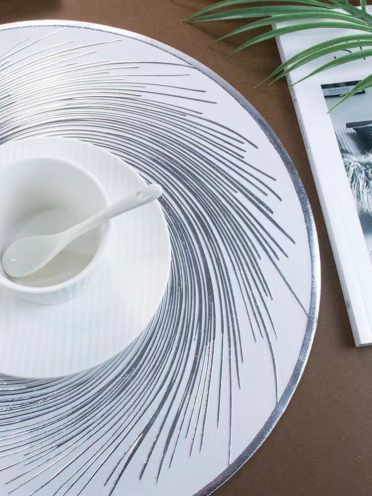 Отзывы на Набор сервировочных салфеток для стола 4 штуки белые с серебром D38см