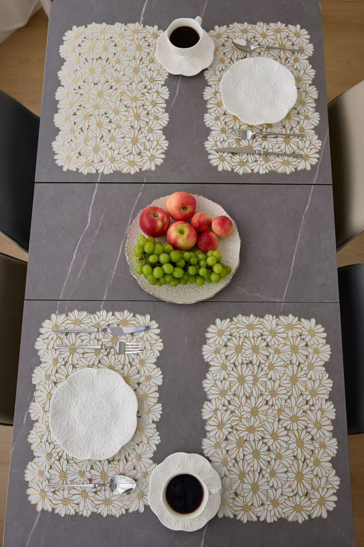 Набор сервировочных салфеток для стола 4 штуки белые с золотом 30*45см "Ромашки" информация: